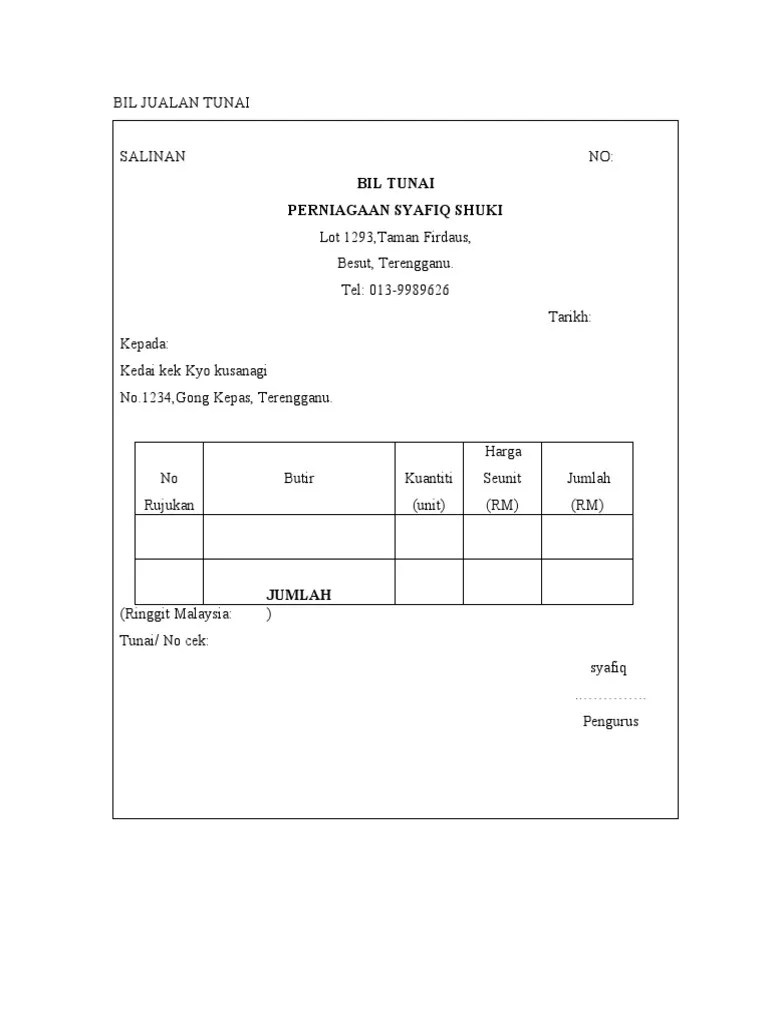 Apabila peniaga membeli secara tunai, beliau diberi bil tunai asal manakala . Topline mini bill book buku bil tunai 80 s x 1 ply bb t3505 1. Pembeli memulangkan bekas kosong yang dicaj dalam invois. Penjual menyimpan dokumen salinan dan pembeli diberi dokumen asal. Setiap koreksi harus ditandatangani oleh penarik di tempat kosong yang terdekat dengan tulisan yang dikoreksi. Borang tuntutan tunai runcit dan bil tunai dll invois dan bil bayaran. Bil, butir, kuantiti, harga seunit (rm), jumlah (rm).